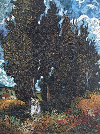 這些柏樹線條畫法筆觸透露出的是種力量....或許也是他身體裡的某種能量釋放